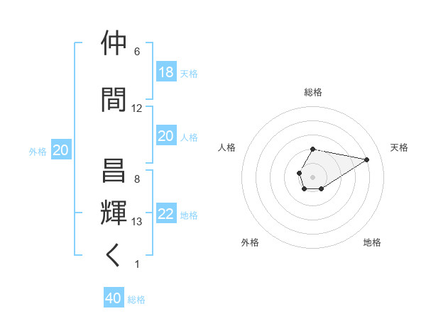仲間 昌輝くさんを姓名の画数から五運を鑑定