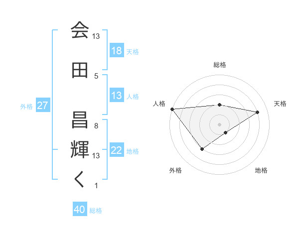 会田 昌輝くさんを姓名の画数から五運を鑑定