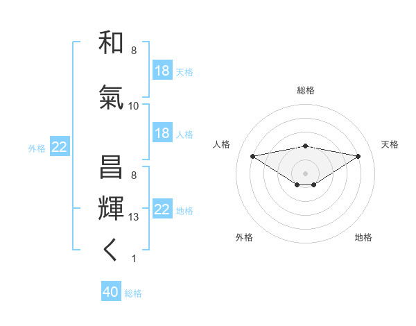 和氣 昌輝くさんの地格は22画の1点!