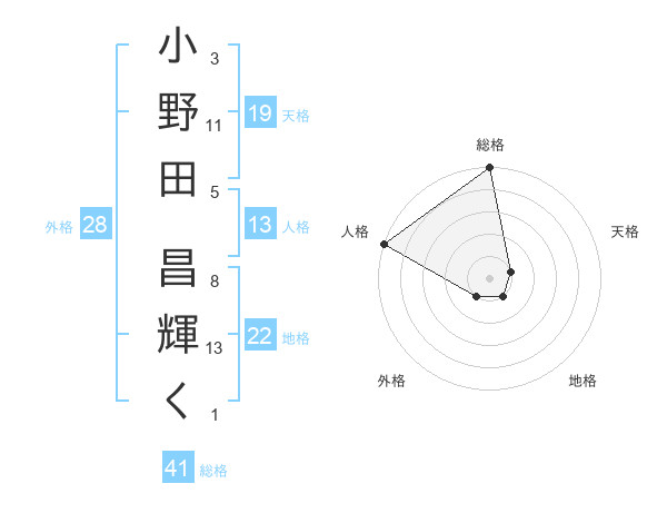小野田 昌輝くさんを姓名の画数から五運を鑑定