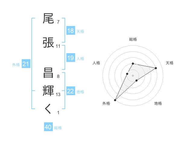尾張 昌輝くさんを姓名の画数から五運を鑑定