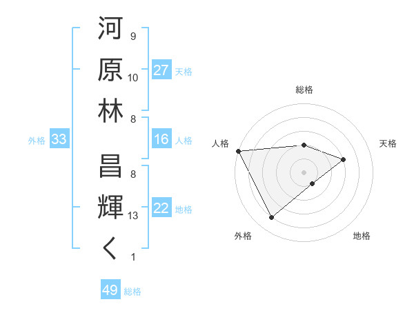河原林 昌輝くさんを姓名の画数から五運を鑑定