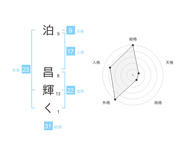 泊 昌輝くさんを姓名の画数から五運を鑑定