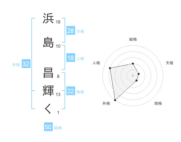 浜島 昌輝くさんを姓名の画数から五運を鑑定