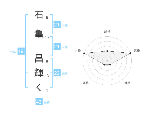 石亀 昌輝くさんを姓名の画数から五運を鑑定