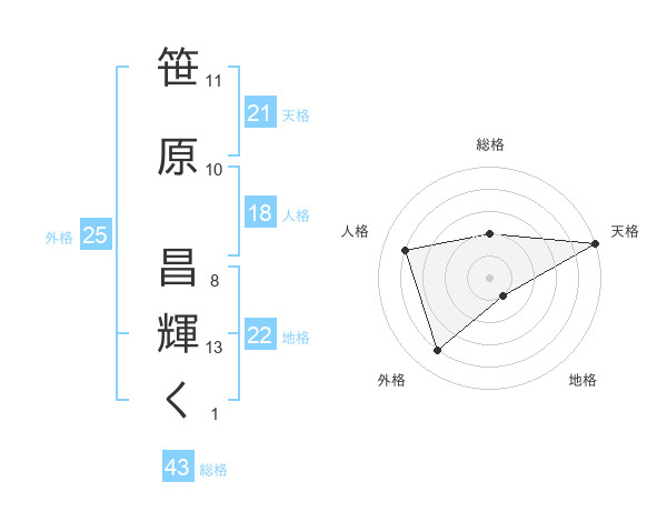 笹原 昌輝くさんを姓名の画数から五運を鑑定