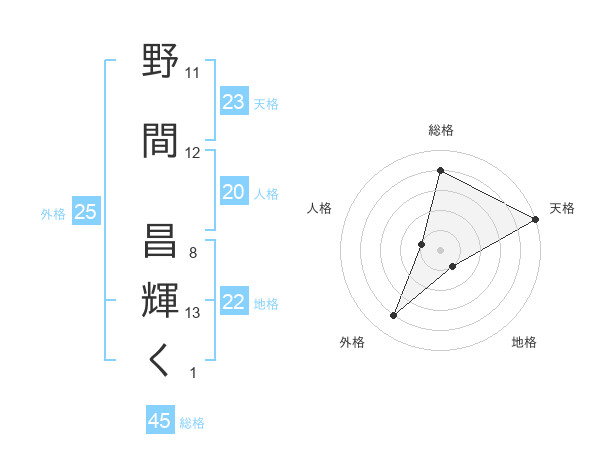 野間 昌輝くさんを姓名の画数から五運を鑑定