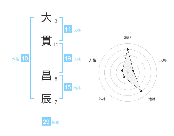 大貫 昌辰さんの総格は29画の4点!