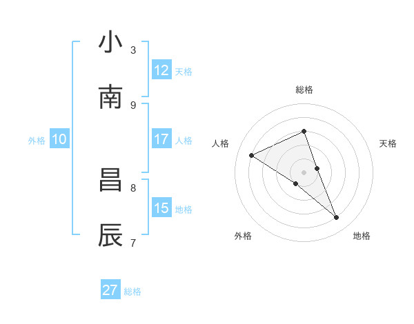 小南 昌辰さんの総格は27画の3点!