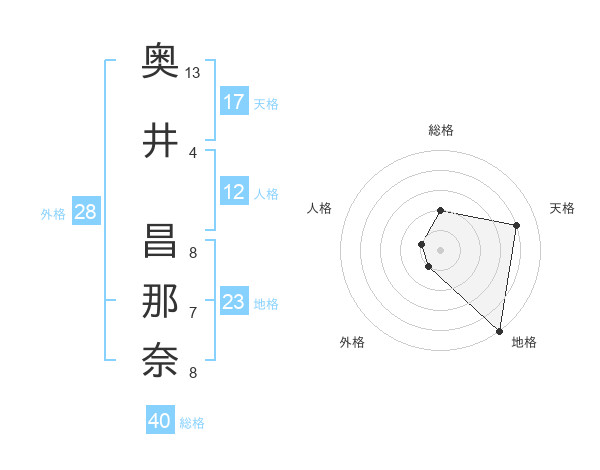 奥井 昌那奈さんを姓名の画数から五運を鑑定