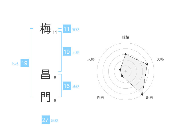 梅 昌門さんの総格は27画の3点!