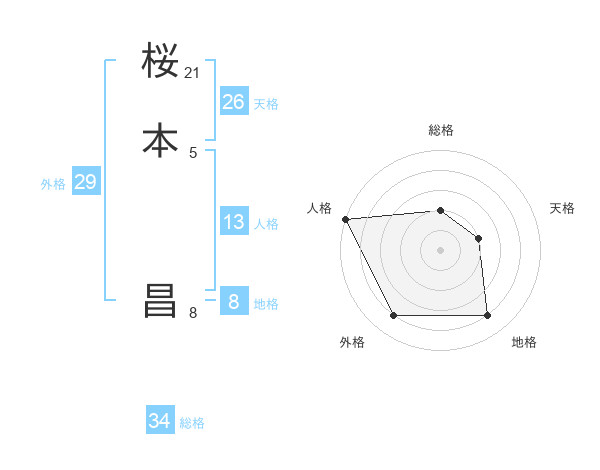 桜本 昌さんの総格は34画の2点!