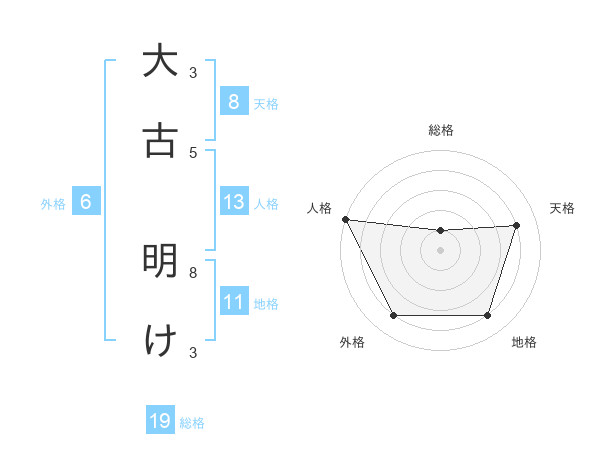 大古 明けさんの総格は19画の1点!