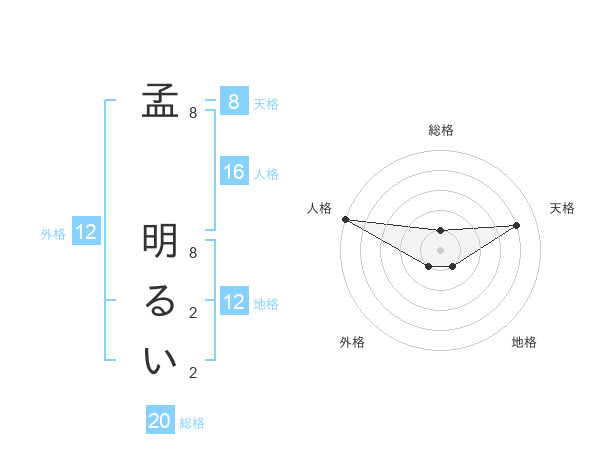 孟 明るいさんの地格は12画の1点!