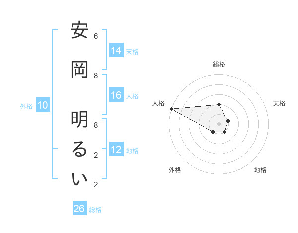 安岡 明るいさんの総格は26画の2点!