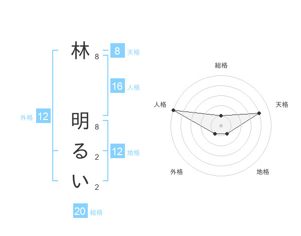林 明るいさんの総格は20画の1点!