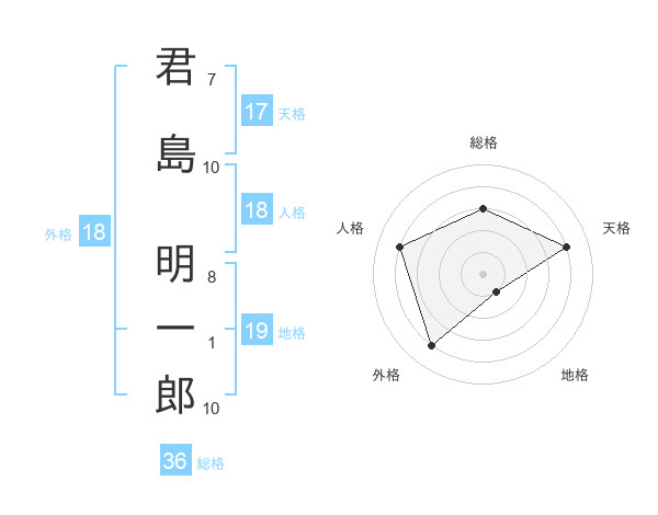 君島 明一郎さんを姓名の画数から五運を鑑定