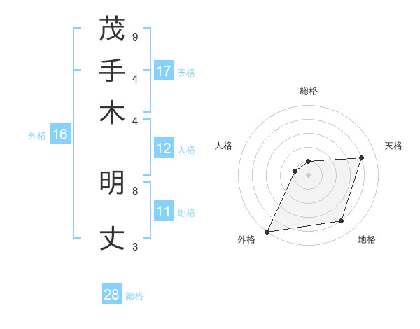 茂手木 明丈さんの天格は17画の4点!