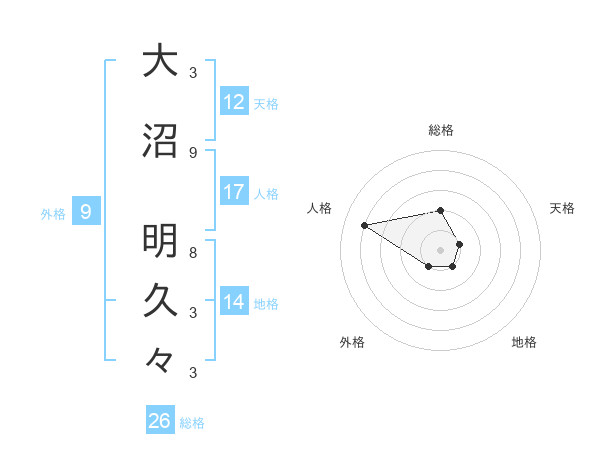 大沼 明久々さんを姓名の画数から五運を鑑定