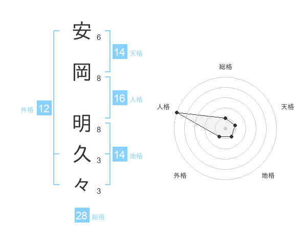 安岡 明久々さんを姓名の画数から五運を鑑定