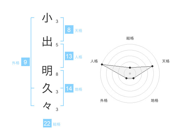 小出 明久々さんの総格は22画の1点!