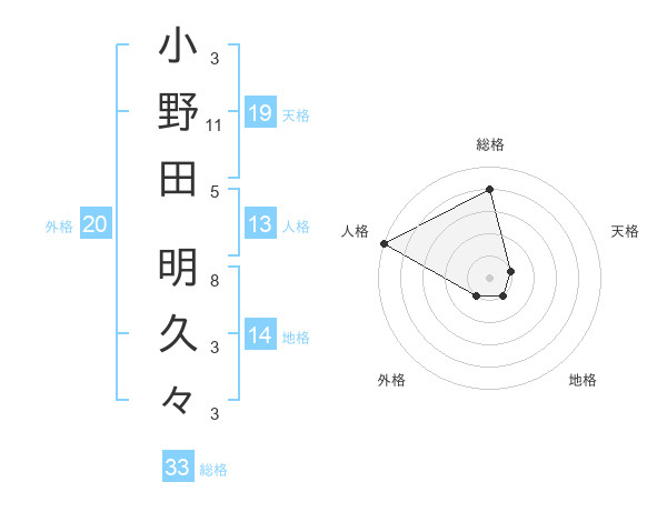 小野田 明久々さんを姓名の画数から五運を鑑定