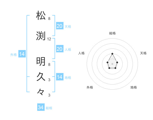 松渕 明久々さんを姓名の画数から五運を鑑定