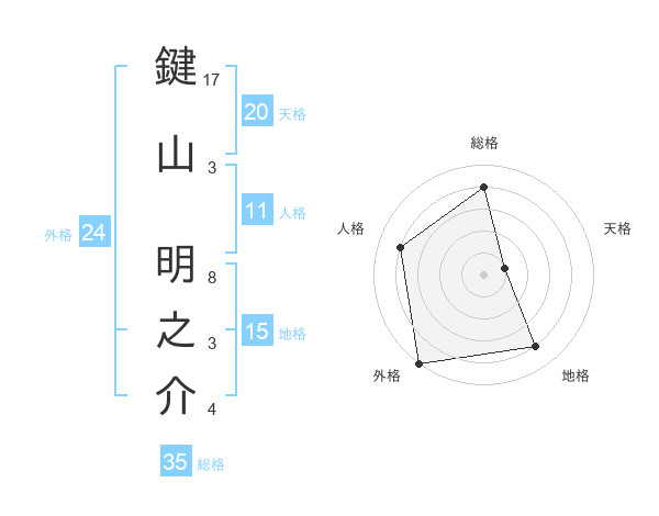 鍵山 明之介さんを姓名の画数から五運を鑑定
