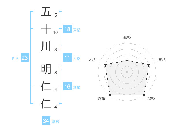 五十川 明仁仁さんを姓名の画数から五運を鑑定