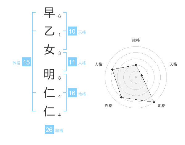 早乙女 明仁仁さんの総格は26画の2点!