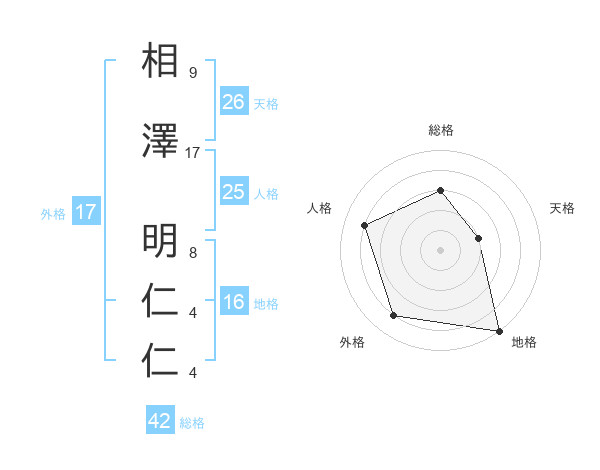 相澤 明仁仁さんの総格は42画の3点!