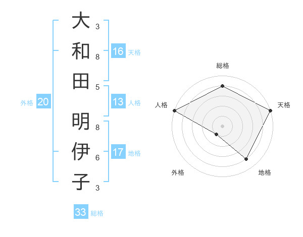 大和田 明伊子さんを姓名の画数から五運を鑑定