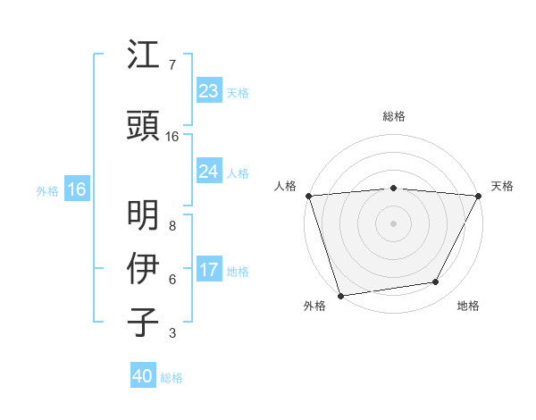 江頭 明伊子さんを姓名の画数から五運を鑑定
