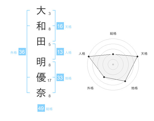 大和田 明優奈さんを姓名の画数から五運を鑑定