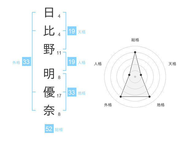 日比野 明優奈さんの総格は52画の4点!