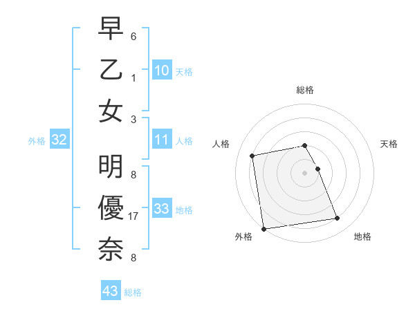 早乙女 明優奈さんを姓名の画数から五運を鑑定