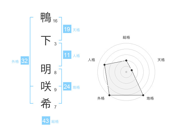 鴨下 明咲希さんを姓名の画数から五運を鑑定