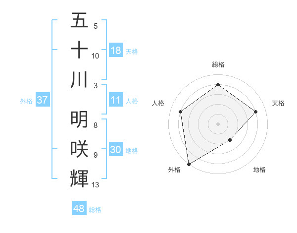 五十川 明咲輝さんを姓名の画数から五運を鑑定