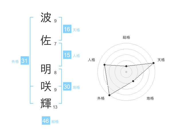 波佐 明咲輝さんを姓名の画数から五運を鑑定