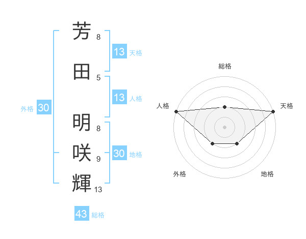芳田 明咲輝さんの天格は13画の5点!