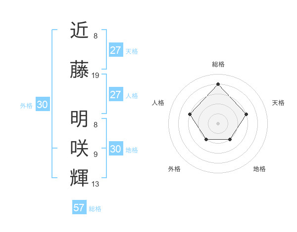 近藤 明咲輝さんを姓名の画数から五運を鑑定