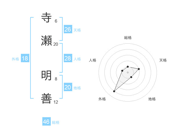 寺瀬 明善さんの総格は46画の1点!