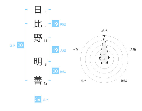日比野 明善さんの総格は39画の5点!