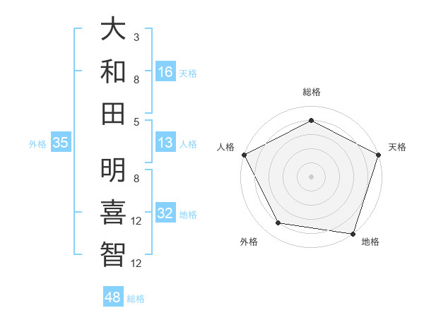 大和田 明喜智さんの人格は13画の5点!