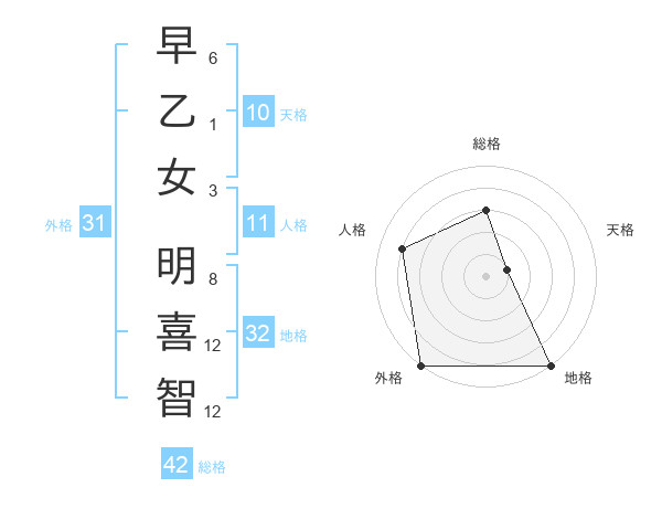 早乙女 明喜智さんを姓名の画数から五運を鑑定