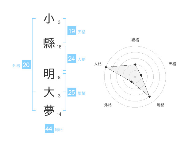 小縣 明大夢さんを姓名の画数から五運を鑑定
