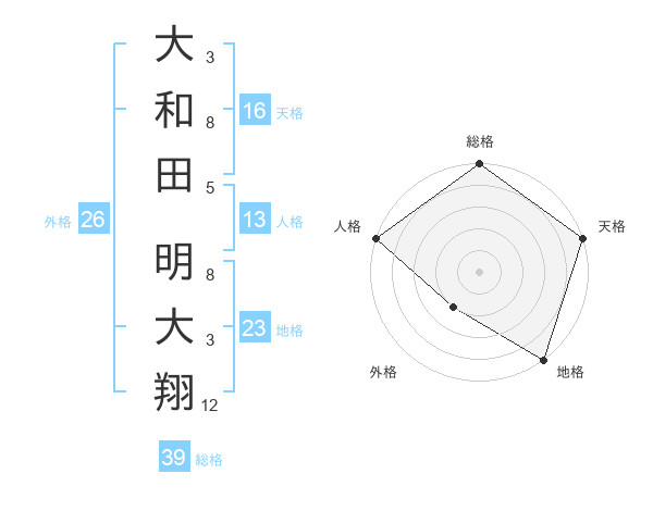 大和田 明大翔さんを姓名の画数から五運を鑑定