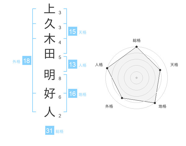 上久木田 明好人さんの天格は15画の4点!