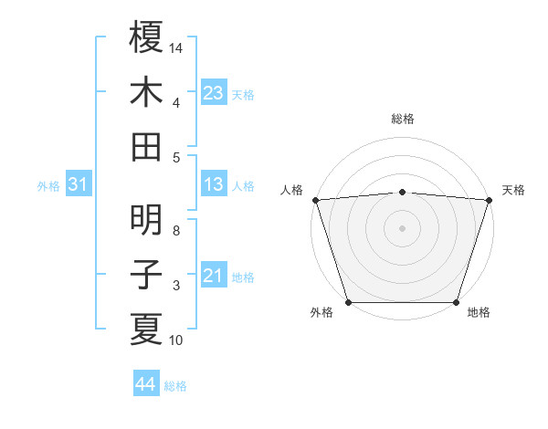 榎木田 明子夏さんの天格は23画の5点!