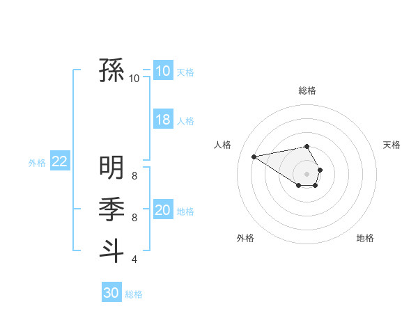 孫 明季斗さんの外格は22画の1点!